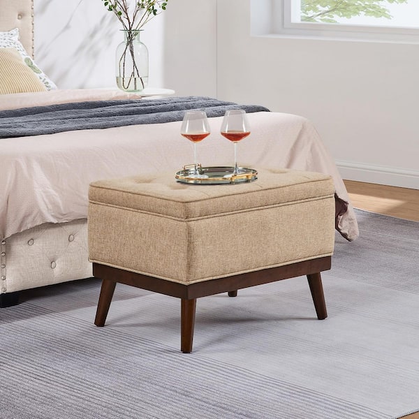 Designs4Comfort Marcel Mid Century Tan Fabric Rectangle Storage Ottoman