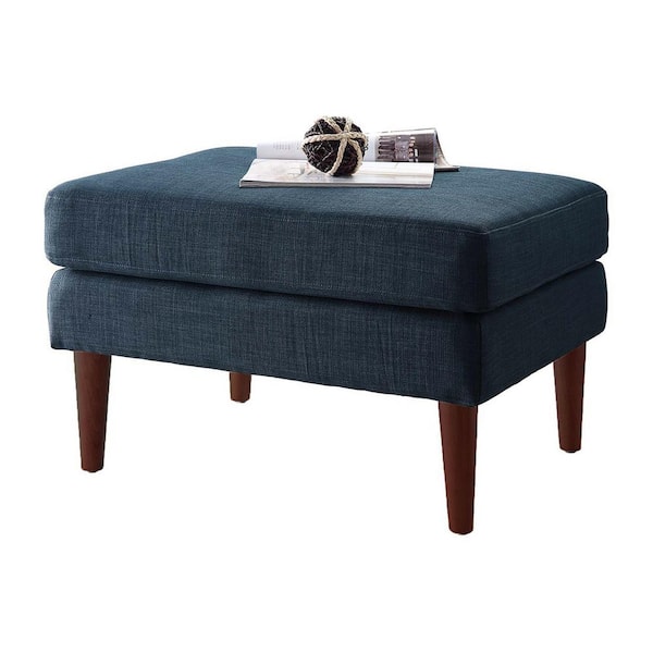 Designs4Comfort Marlow Dark Blue Linen Mid Century Ottoman