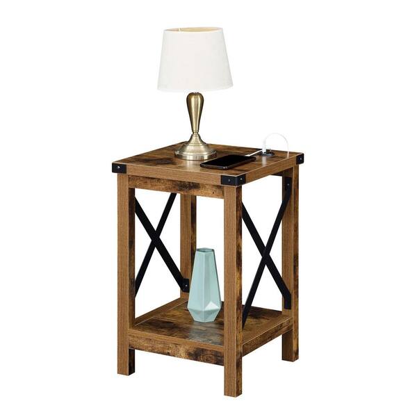 Durango 15.75 in.(W) Barnwood & Black 24 in.(H) Square Particle End table with Charging Station