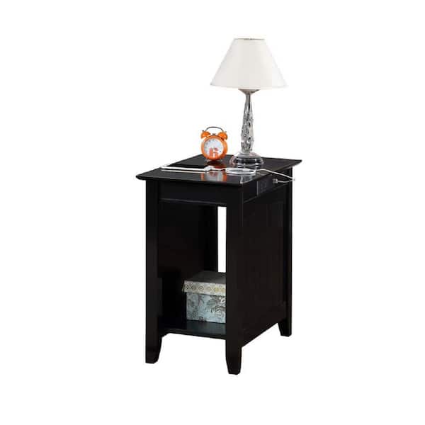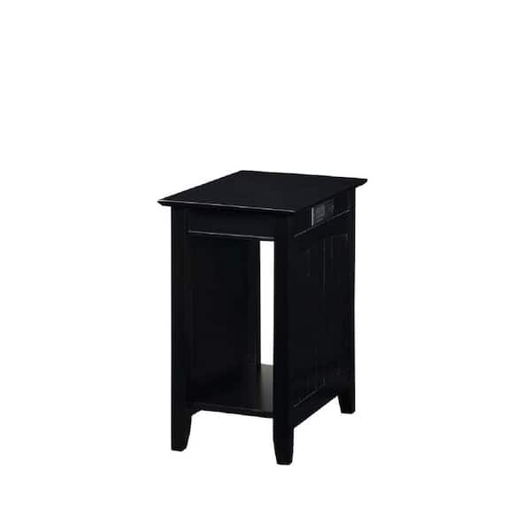 Edison 14 in. Black Standard Rectangle Wood End Table with Charging Station and Shelf