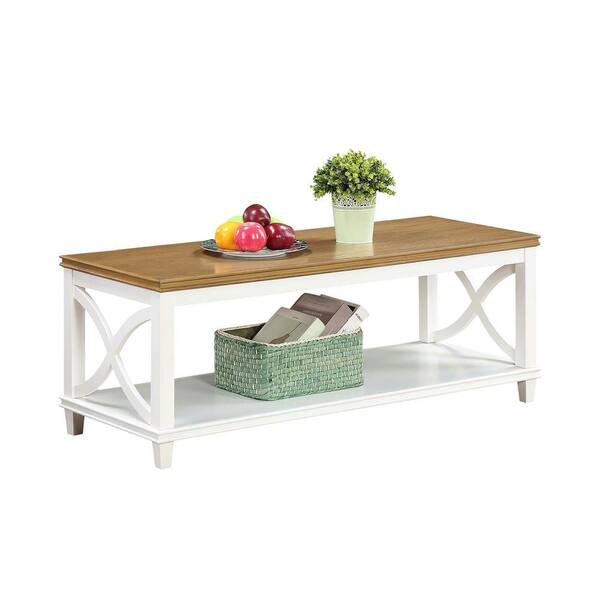 Florence 47 in. Driftwood/White Standard Rectangle Wood Coffee Table Shelf