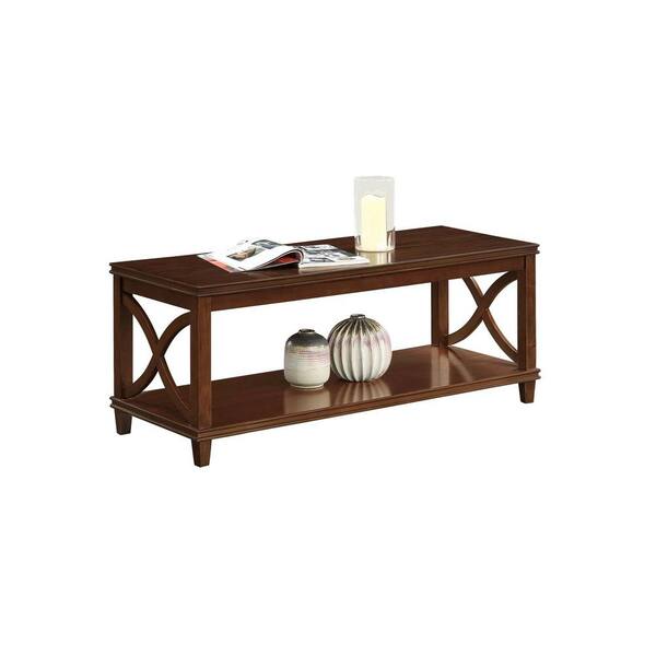 Florence 47 in. Espresso Standard Rectangle Wood Coffee Table Shelf