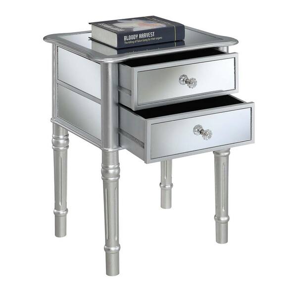 Gold Coast Mayfair 14 in. Silver Standard Rectangular Mirror Top End Table with 2-Drawers
