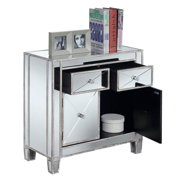 Gold Coast Vineyard 28 in. Weathered White Standard Rectangular Mirror Top Console Hall Table with 2-Drawers and Cabinet