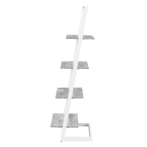 Graystone 57 in. Faux Birch/White Particle Board 4 Shelf Ladder Bookcase with Metal Frame