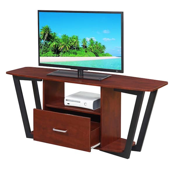 Graystone 59.25 in. Cherry and Black Particle Board 1-Drawer TV Stand with Shelves for TV's up to 65 in.