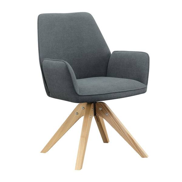 Miranda Slate Gray Fabric and Natural Wood Swivel Accent Chair