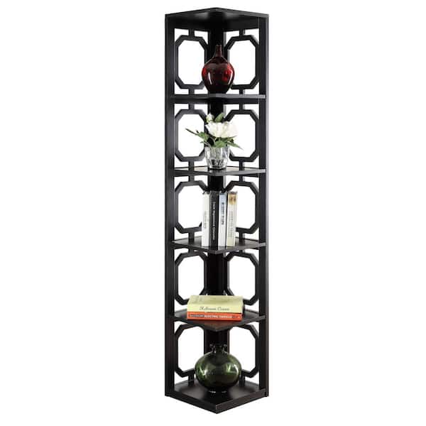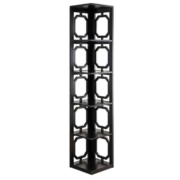 Omega 12 in. W Black 5 Tier Corner Bookcase