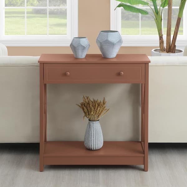 Oxford 31.5 in. Terracotta Rectangle MDF Console Table with Drawer and Shelf