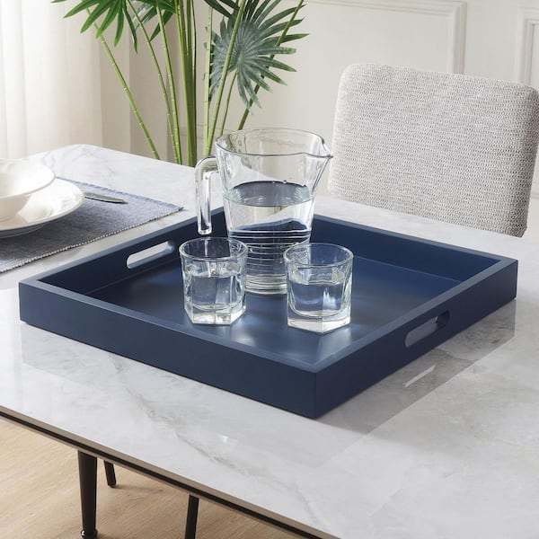 Palm Beach 16.75 in. W x 2 in. H x 16.75 in. D Square Blue MDF Serving Tray