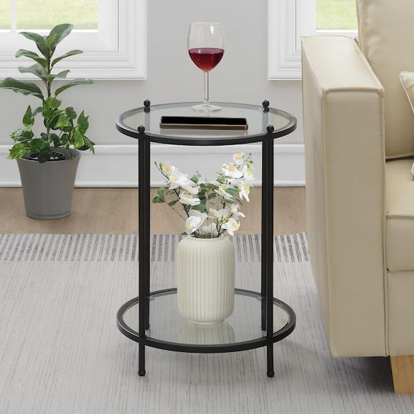 Royal Crest 18 in. Black Round Glass Top End Table with 2-Tiers
