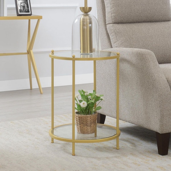 Royal Crest 18 in. Gold Standard Height Round Glass Top End Table