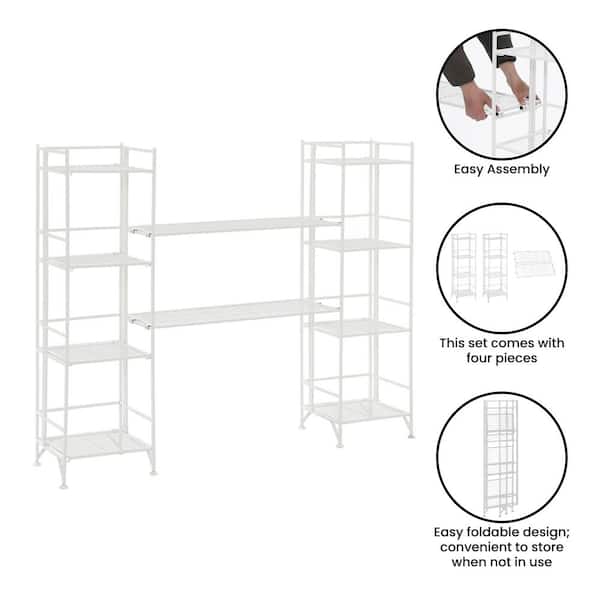 Xtra Storage 44.75 in. Tall White Metal 4-Shelf Accent Bookcase with Extension Shelves