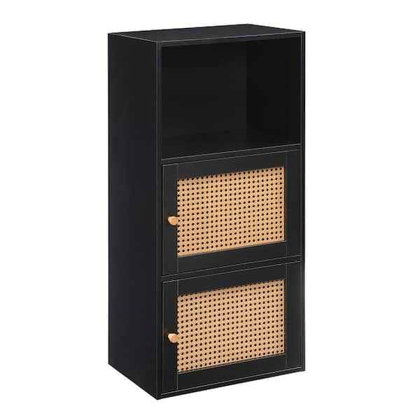 Xtra Storage Black and Beige Barley Boho Weave 35.25 in. H 2 Door Cabinet with Shelf