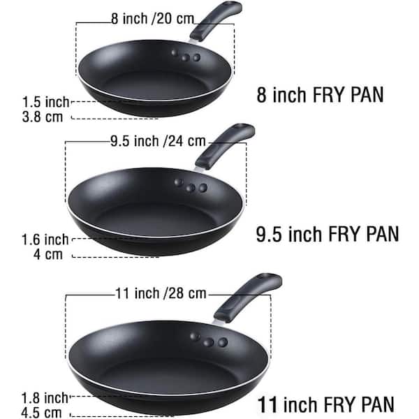 3-Piece 8-9.5- 11 in. Aluminum Nonstick Frying Pans Set