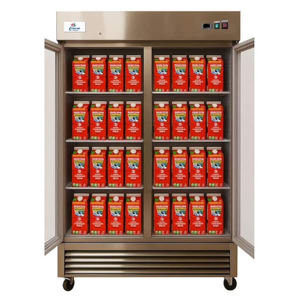 54 in. W 47 cu.ft Two Glass Door Refrigerator Display Reach-In Upright Commercial Merchandiser in Stainless Steel