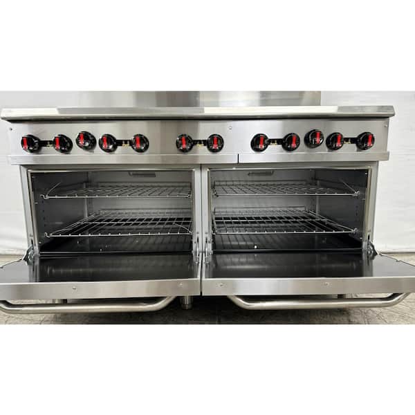 60 in. W 10 Burner Freestanding Commercial Double Oven Gas Range in. Stainless Steel