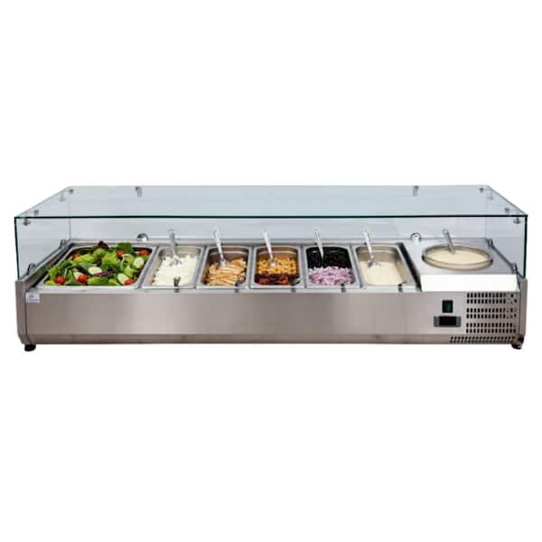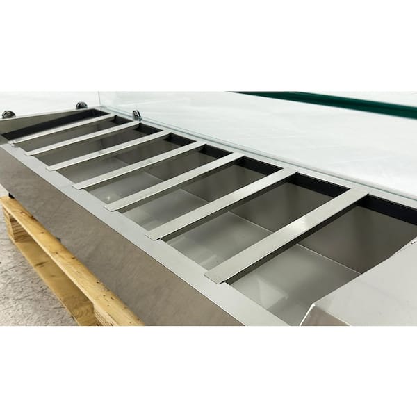 60 in. W 2.1 cu. ft. Commercial Countertop Refrigerator Condiment Prep Rail with Glass Sneeze Guard in Stainless Steel