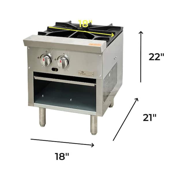 • 80,000 BTU burner, center shelf for storage, ideal for large pots
