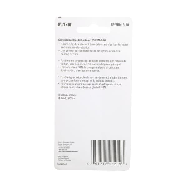 FRN Series 60 Amp Brass Time-Delay Fuse Cartridges (2-Pack)
