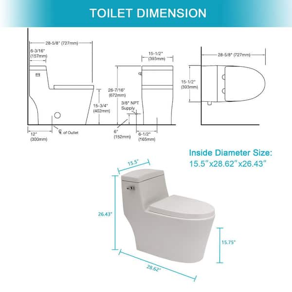 1-piece 1.28 GPF Single Flush Elongated Toilet in White Seat Included