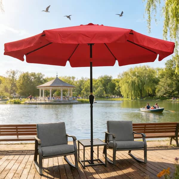 10 ft. Metal Patio Umbrella in Red with Crank and Push Button Tilt