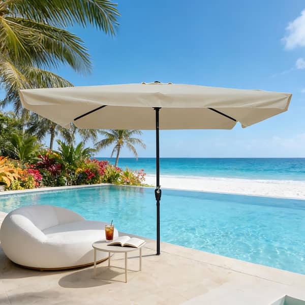 10 ft. Metal Patio Umbrella in Tan with Crank and Push Button Tilt