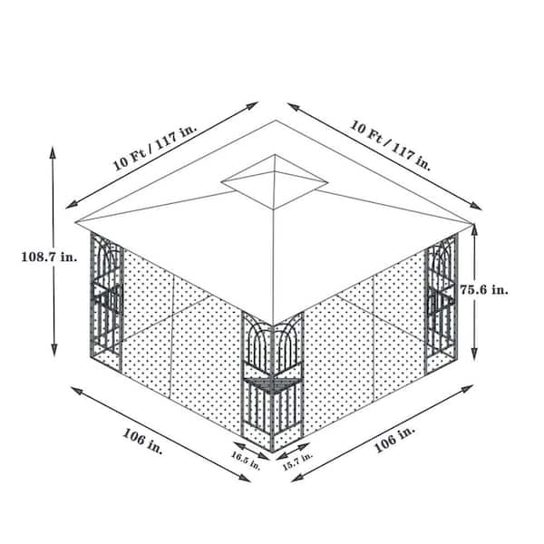 10 ft. x 10 ft. Outdoor Gray Steel Gazebo with Polyester Double Roof and Netting