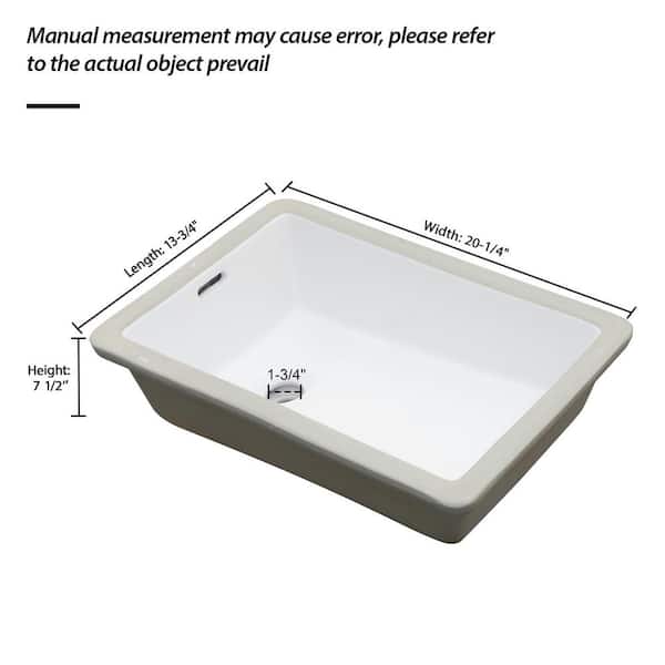 14 in. Undermount Rectangular Bathroom Sink with Overflow in White