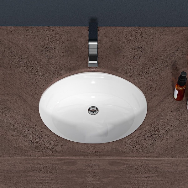16.5 in. Undermount Oval Bathroom Sink with Overflow in White Ceramic