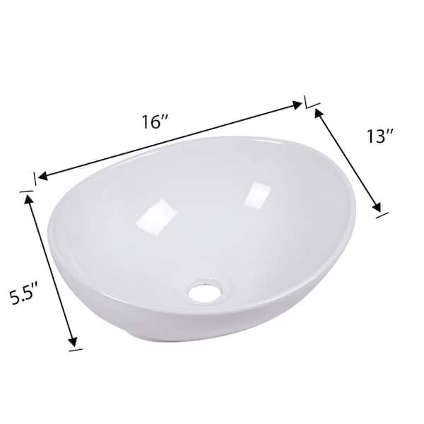 16 in. Vessel Oval Bathroom Sink in White Ceramic