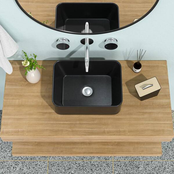 16 in. Vessel Rectangular Bathroom Sink in Matte Black Ceramic