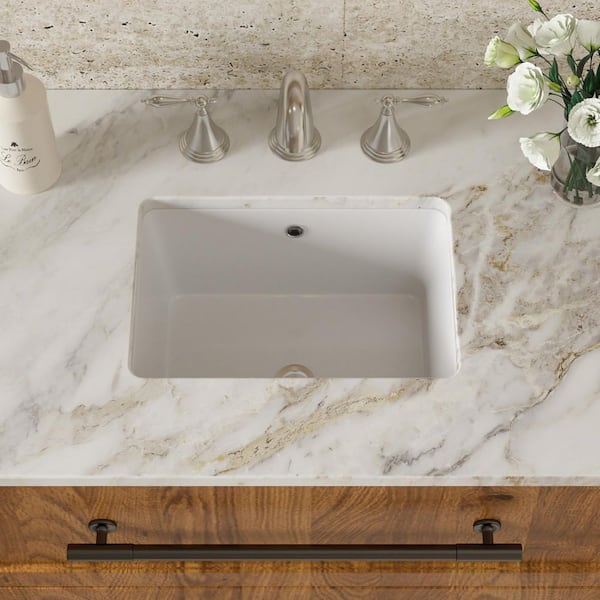 17 in. Undermount Rectangular Bathroom Sink with Overflow in White Ceramic