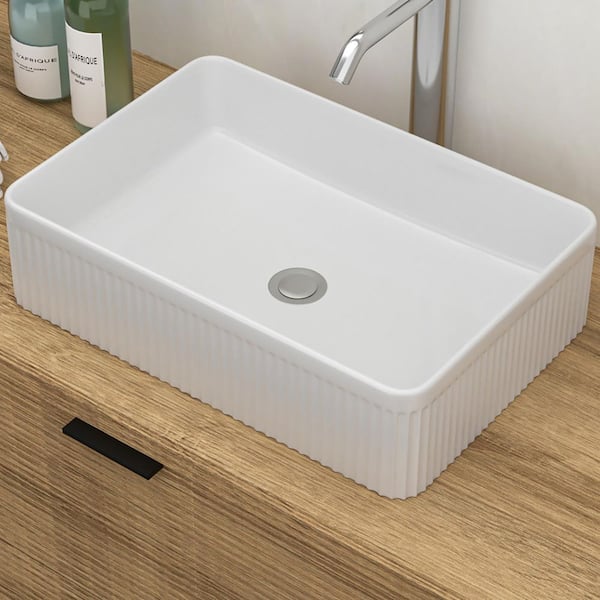 19.63 in. Vessel Rectangular Bathroom Sink in White Ceramic