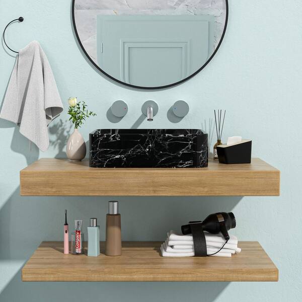 19 in. Vessel Rectangular Bathroom Sink in Black Ceramic