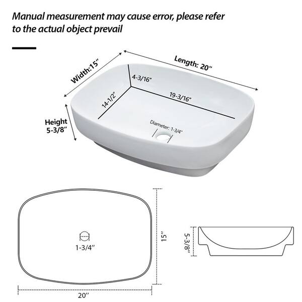20 in. Drop-In Ceramic Bathroom Sink in White