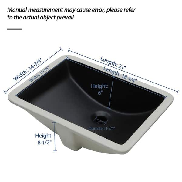 21 in. Undermount Rectangular Bathroom Sink with Overflow Drain in Black