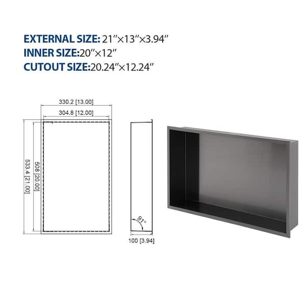 21 in. W x 13 in. H x 4 in. D Shower Niche Set of 1-Pieces in Gunmetal Black
