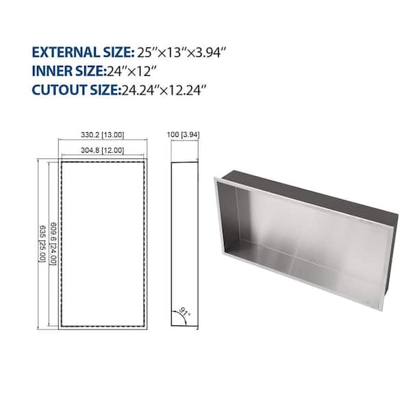 25 in. W x 13 in. H x 4 in. D Shower Niche Set of 1-Pieces in Brushed Nickel