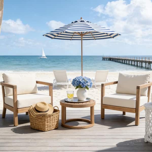 3-Piece Acacia Wood Patio Conversation Set with Beige Cushions
