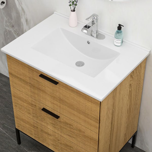 30 in. Drop-In Ceramic Bathroom Sink in White