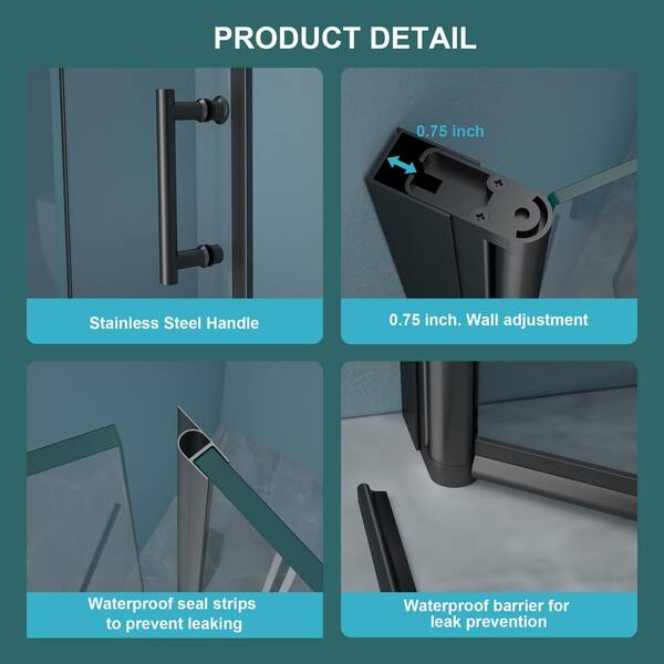 34 in. W x 72 in. H Bi-Fold Semi-Frameless Shower Door in Matte Black Finish with Clear Glass