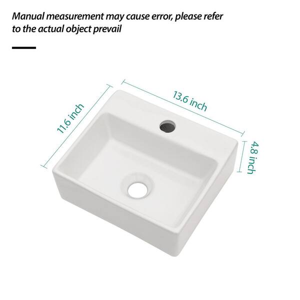 4.8 in. Ceramic Wall-Mounted Rectangular Bathroom Sink in White