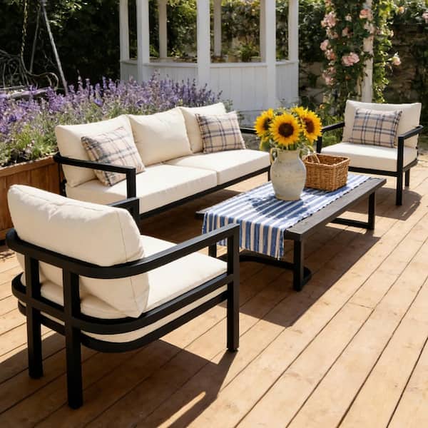 4-Piece Steel Patio Conversation Set with Beige Cushions