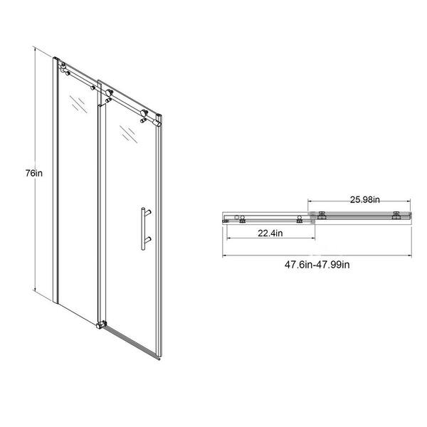 48 in. W x 76 in. H Single Sliding Semi-Frameless Shower Door in Chrome Finish with Clear Glass