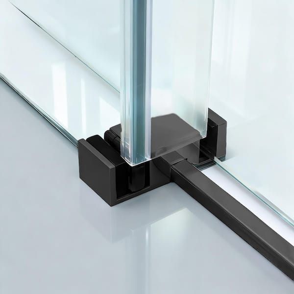 48 in. W x 76 in. H Single Sliding Semi-Frameless Shower Door in Matte Black Finish with Clear Glass
