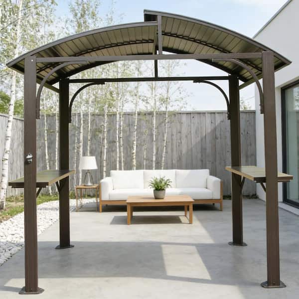 5 ft. x 8 ft. Outdoor Brown Metal Hardtop Grill Gazebos with Galvanized Steel Double Roof and 2-Side Shelves