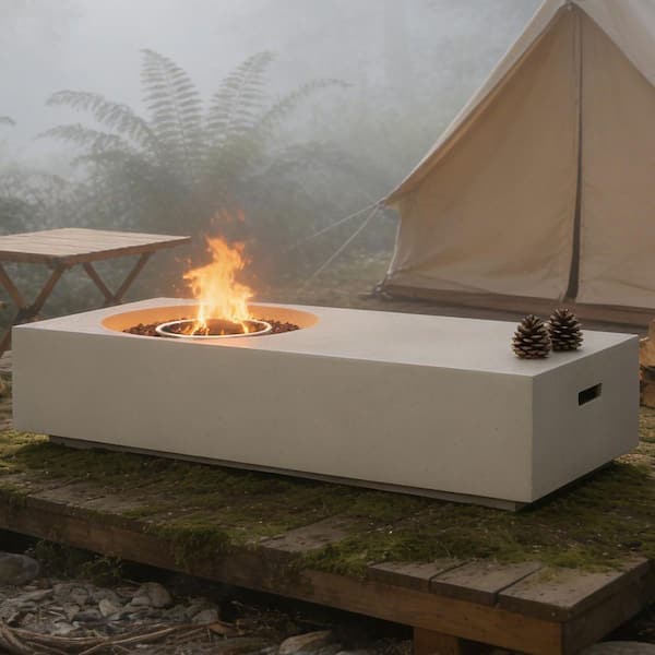 56 in. Light Gray Rectangular Propane Outdoor Fire Pit