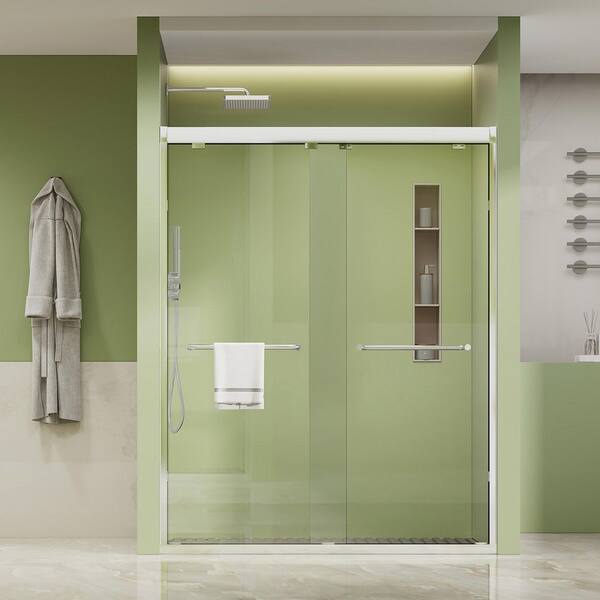 58 to 60 in. W x 76 in. H Double Sliding Framed Shower Door in Bright Silver Finish with Clear Glass