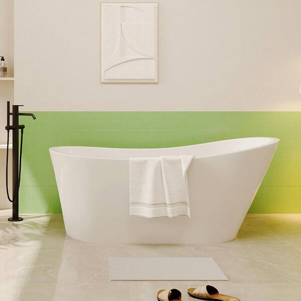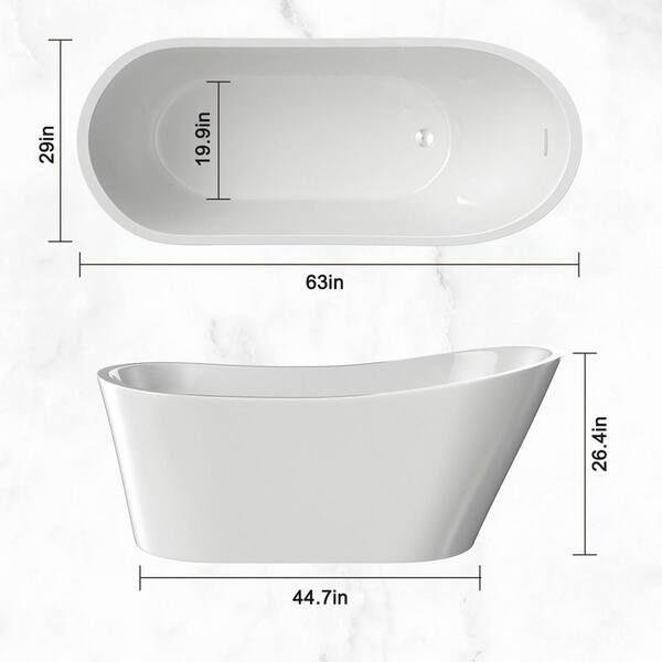 63 in. x 29 in. Acrylic Freestanding Soaking Bathtub in Glossy White with Chrome Reversible Drain